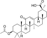 '''أسيتوكزولون Acetoxolone''' هو مشتق أستيل لحمض الغليسيريتنيك, يستخدم لعلاج ال[[قرحة هضمية|قرحة الهضمية]] وال[[ارتداد معدي مريئي| | '''أسيتوكزولون Acetoxolone''' هو مشتق أستيل لحمض الغليسيريتنيك, يستخدم لعلاج ال[[قرحة هضمية|قرحة الهضمية]] وال[[ارتداد معدي مريئي|ارتداد المعدي المريئي]]. | ||