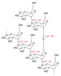الدكسترين Dextrin مادة لزجة تتشكل أثناء التفكك الكيميائي للنشا. تستعمل بعض أنواع الدكسترين غراء لزاقًا وصمغا على طوابع البريد والمغلفات. ويستعمل الدكسترين أيضًا في تغرية أو تصميغ الورق والمنسوجات. وينتج الدكسترين التجاري بمعالجة النشا بالحرارة أو الحمض أو بكليهما معاً. وينتج الدكسترين أيضًا في جسم الإنسان أثناء عملية الهضم، حيث تفكك الأغذية النشوية إلى دكسترين ومنتجات أخرى.