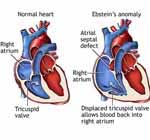 وقد تترافق بعض مشاكل القلب مع شذوذ إيبشتاين، وتتلخّص المشاكل الثّلاثة الأكثر شيوعاً فيما يلي: