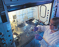 كيميائية تعمل في مختبر